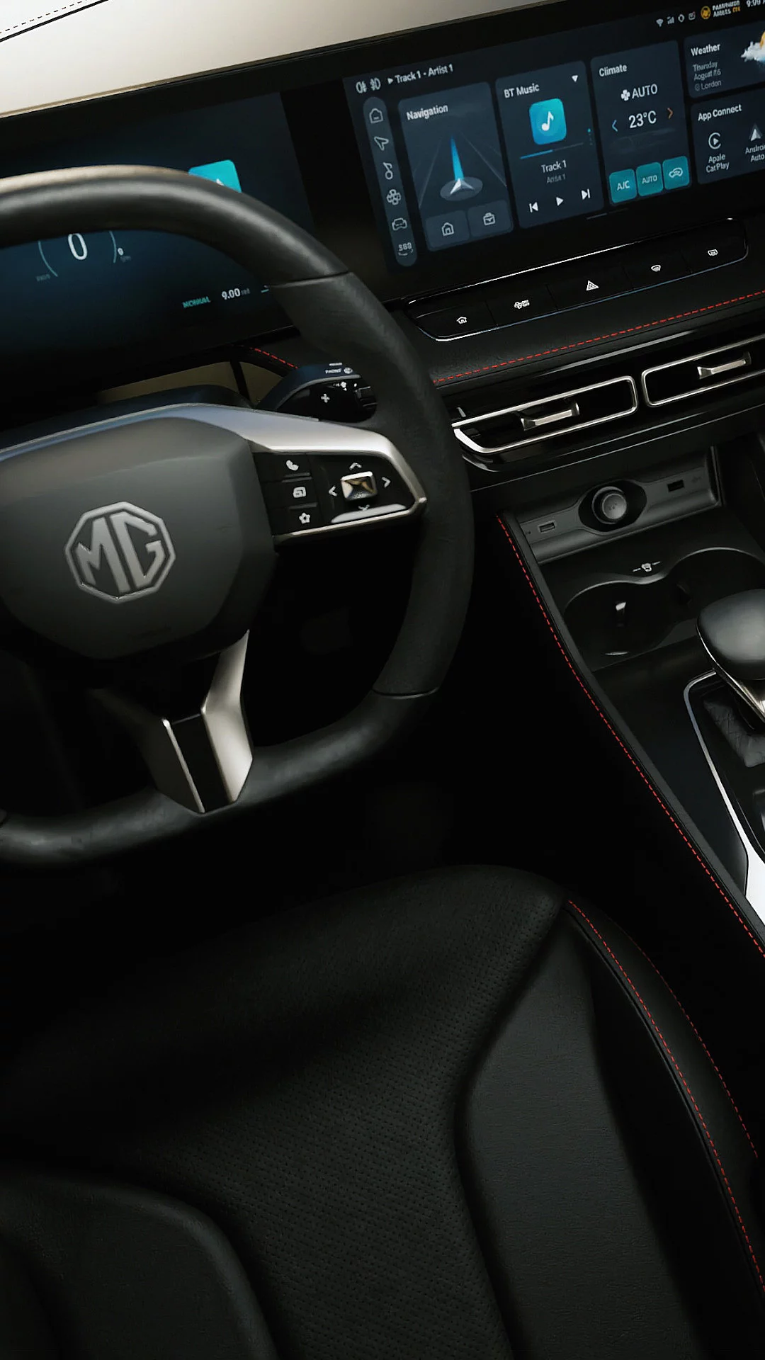 Dual high-resolution screens place infotainment and driving data within view, blending control and connectivity at the centre of the dash.